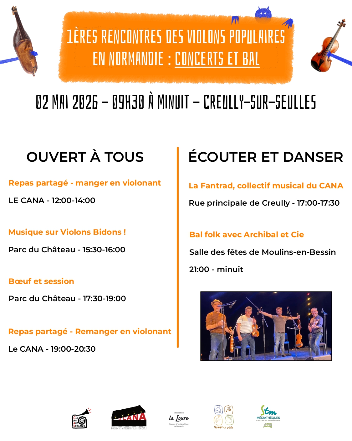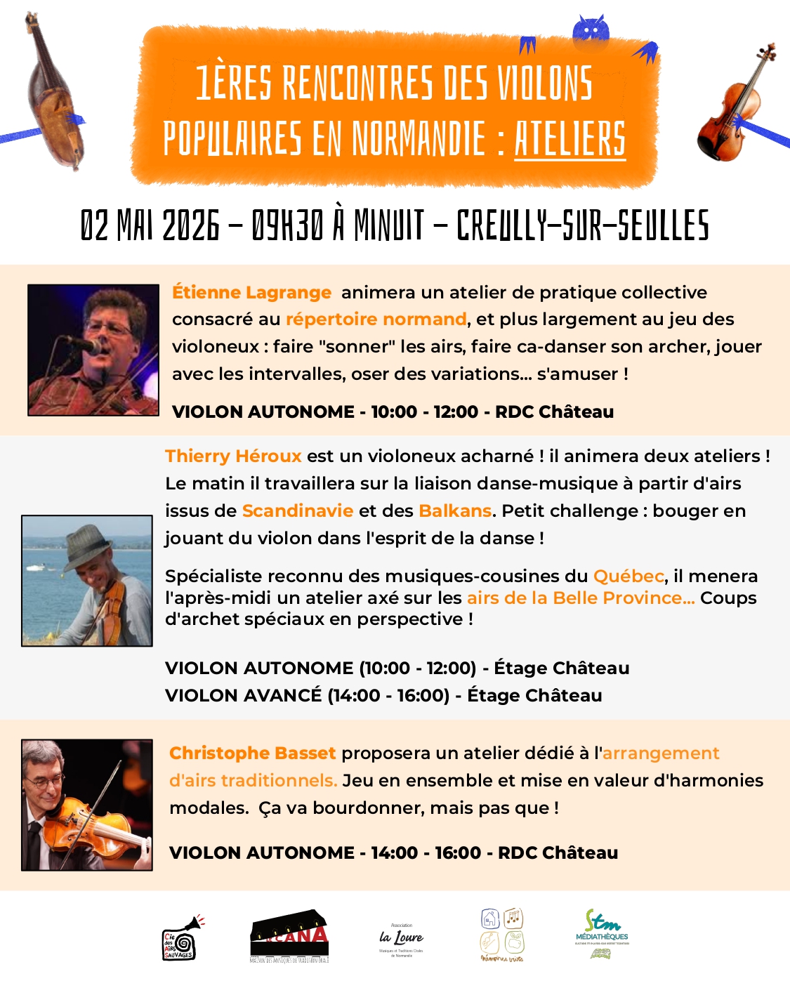 La Loure, Mémoires Vives et la Cie des Airs Sauvages présentent : Les 1ères Rencontres des Violons Populaires en Normandie.