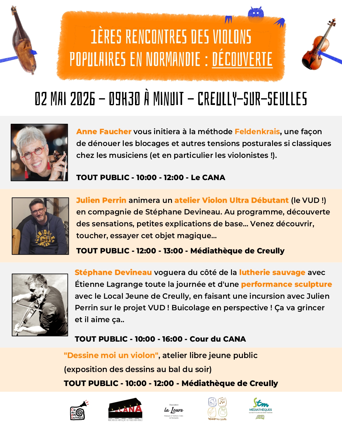 Pendant toute une journée, le violon sera mis en avant, avec des ateliers tout public et pour violons autonomes, des conférences, des expositions et des moments de musique et de convivialité.